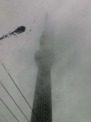 ガラス越しに撮ったスカイツリーに何かが写ってます。