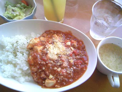 辛くないマーボで、トマトが入っているのかな?