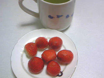 苺を食べる