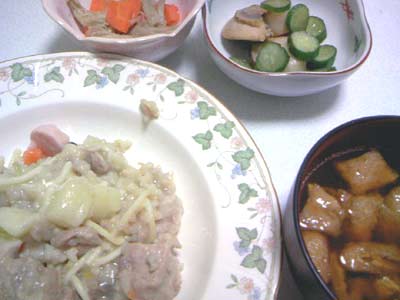 シチューと玄米&雑穀が残っていたけど、玄米&雑穀の量がやや足りないから、