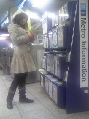 メトロの冊子を読む史絵ちゃん