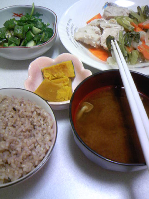 に、玄米+雑穀ご飯とお味噌汁。