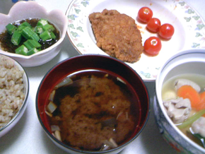 オクラもずくに、玄米&雑穀